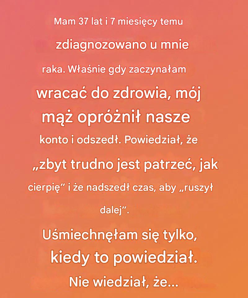 Siedem miesięcy temu usłyszałam diagnozę, która wywróciła do góry nogami wszystko, co myślałam, że wiem o życiu – rak. W jednej chwili świat wywrócił się do góry nogami. Myślałam, że najgorsze będą zabiegi, ból i niekończąca się niepewność. Ale myliłam się. Prawdziwy ból odczuwałam, patrząc, jak mój mąż powoli odchodzi, udając, że się o mnie … Read more