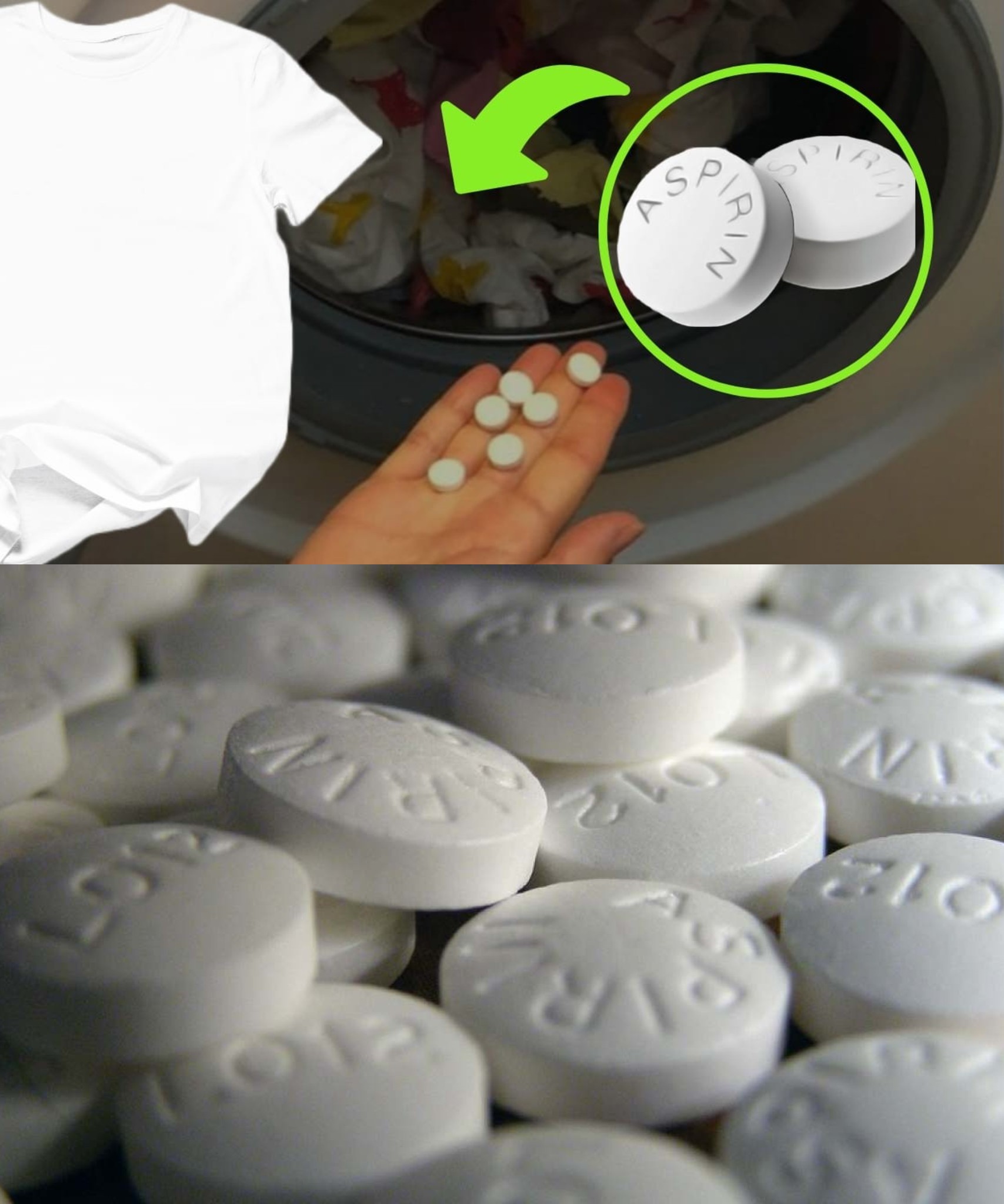 Aspirin in die Waschmaschine geben, wegwerfen und sehen, was passiert: perfekte Kleidung.