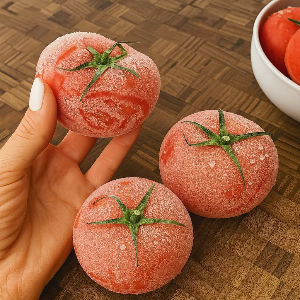 Riposo: Lasciali riposare per 30 minuti. Quindi incidi ogni pomodoro due volte. La pelle si staccherà facilmente.