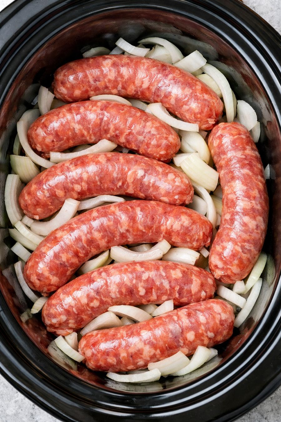 Włóż surowe kiełbaski do wolnowaru, dodaj kilka dodatków i pozwól mu gotować się przez całe popołudnie.